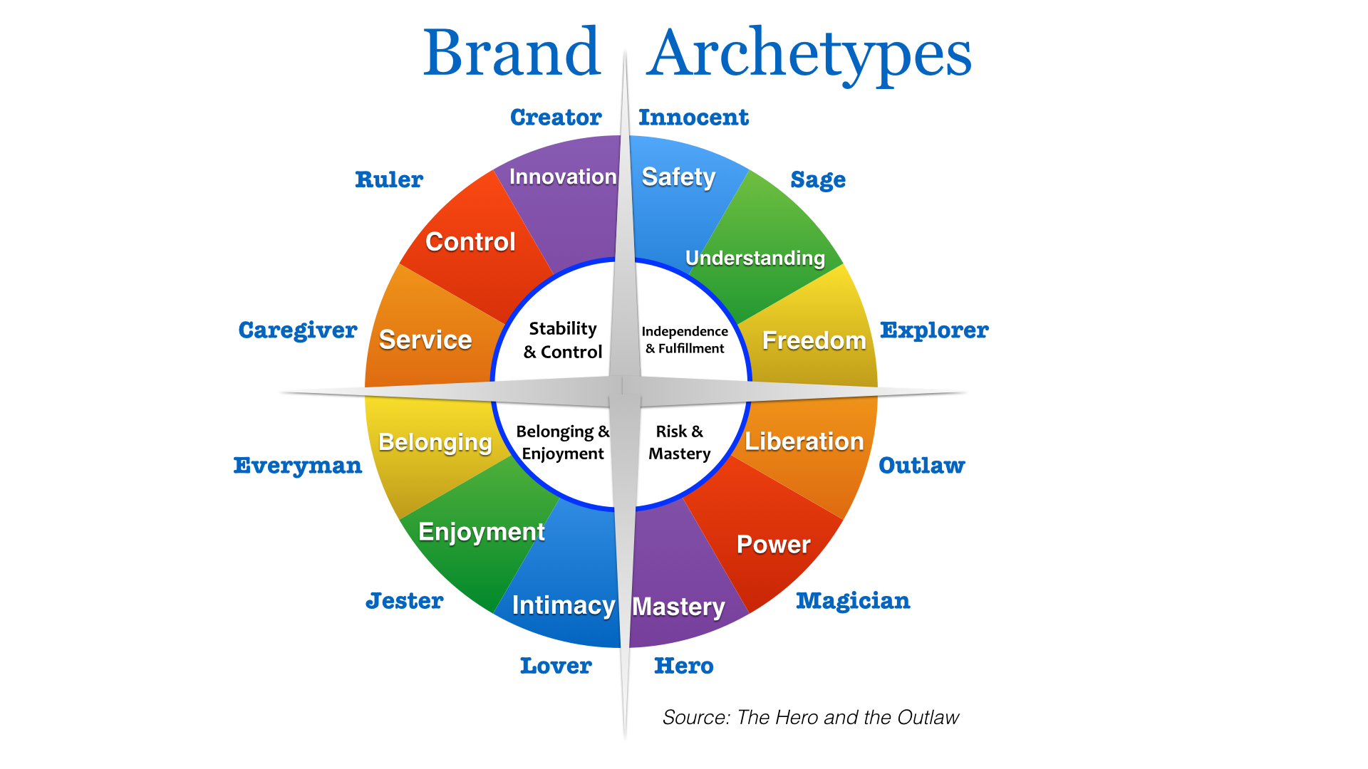 d by the ancient Greeks for their Gods. The “ruler” archetype is Zeus. The “lover” is Aphrodite, later Venus for the Romans. Authors Margaret Mark and Carol Pearson expertly define these archetypes in their book, The Hero and the Outlaw. The number and types of archetypes have expanded over the years, but they are generally divided into a quadrant that separates stability from risk, and belonging from independence. In other words, they are useful heuristics that act as a shortcut to forming a brand attachment based upon an emotional need.