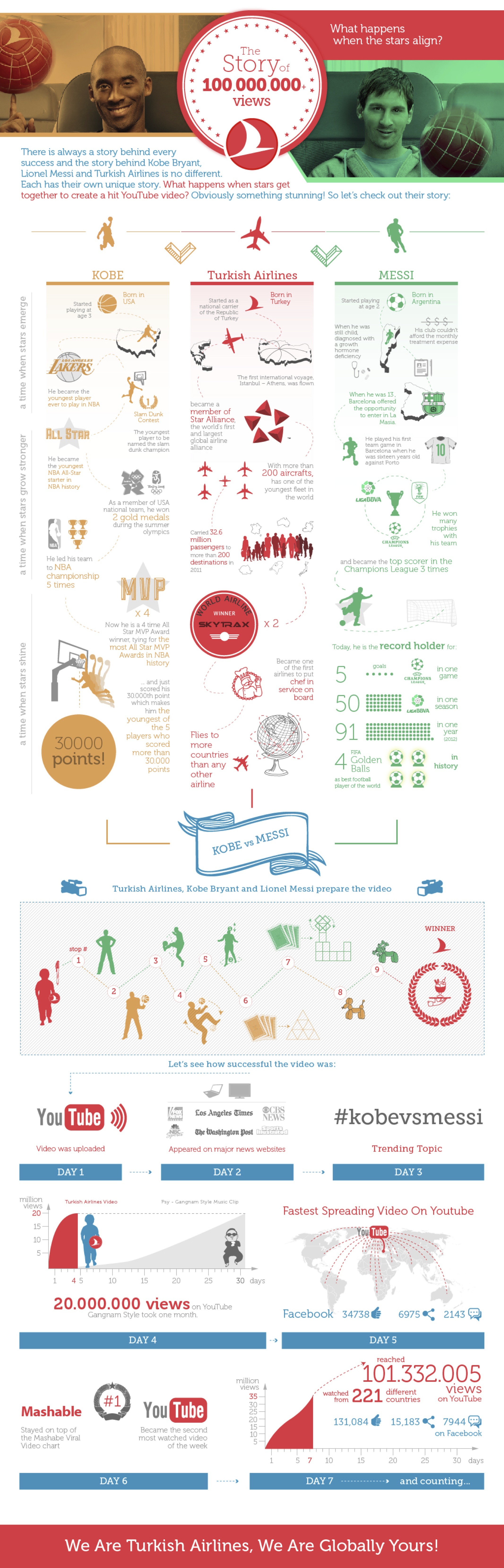 Sometimes the strategy is not about being edgy, it’s about entertainment.  Turkish Airlines just achieved viral video gold with a commercial featuring two of the world’s best known athletes competing for the attention of a young fan.  The video was such a huge success that the airline created its own infographic explaining how it worked. (See below)