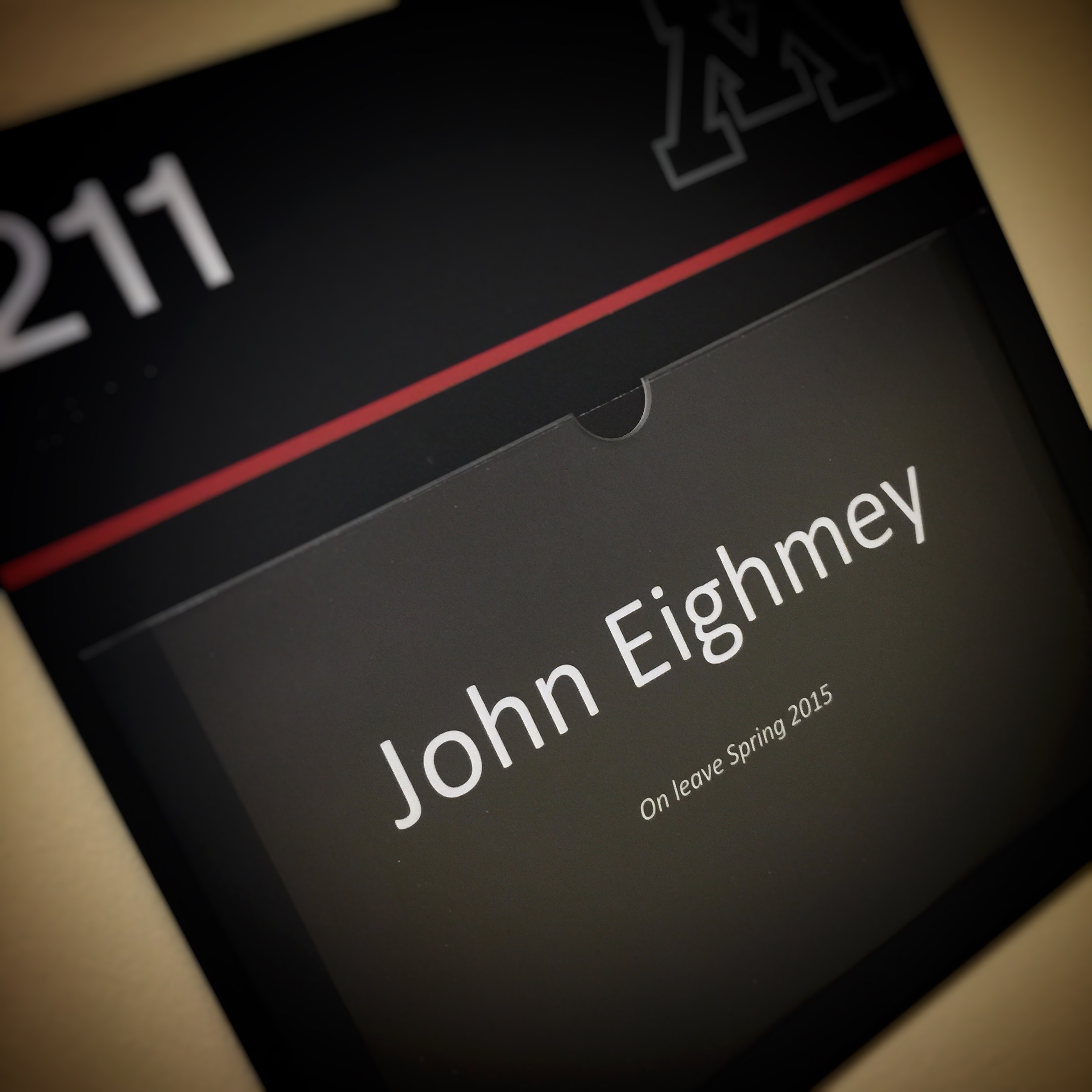 There’s room on the second floor of Murphy Hall with a name attached to it.  It’s room 211.  And the name on the door is John Eighmey.
